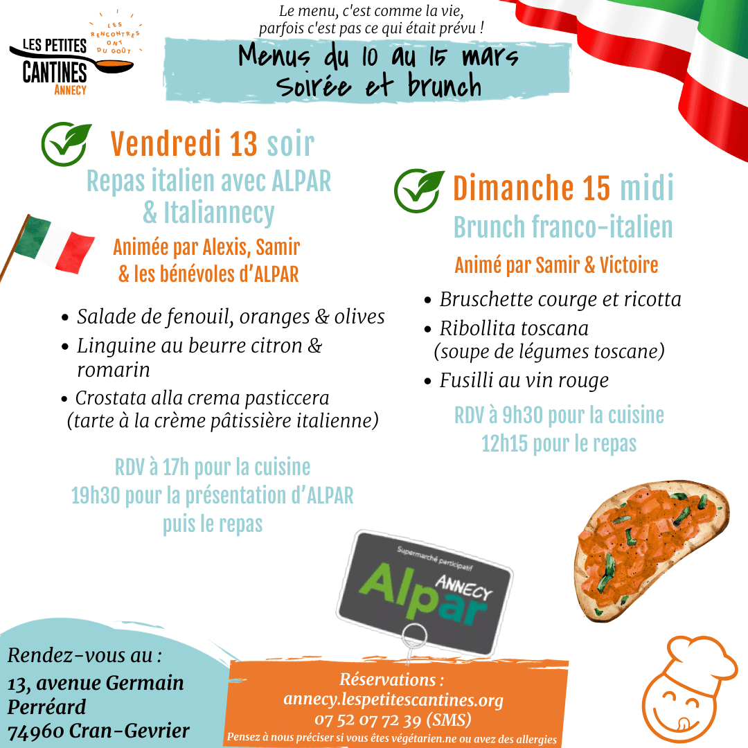 Pour l'occasion, Samir de l'association italiannecy nous propose un menu 100% typique italien, préparé avec les produits d'ALPAR 🤩🕓 RDV à :