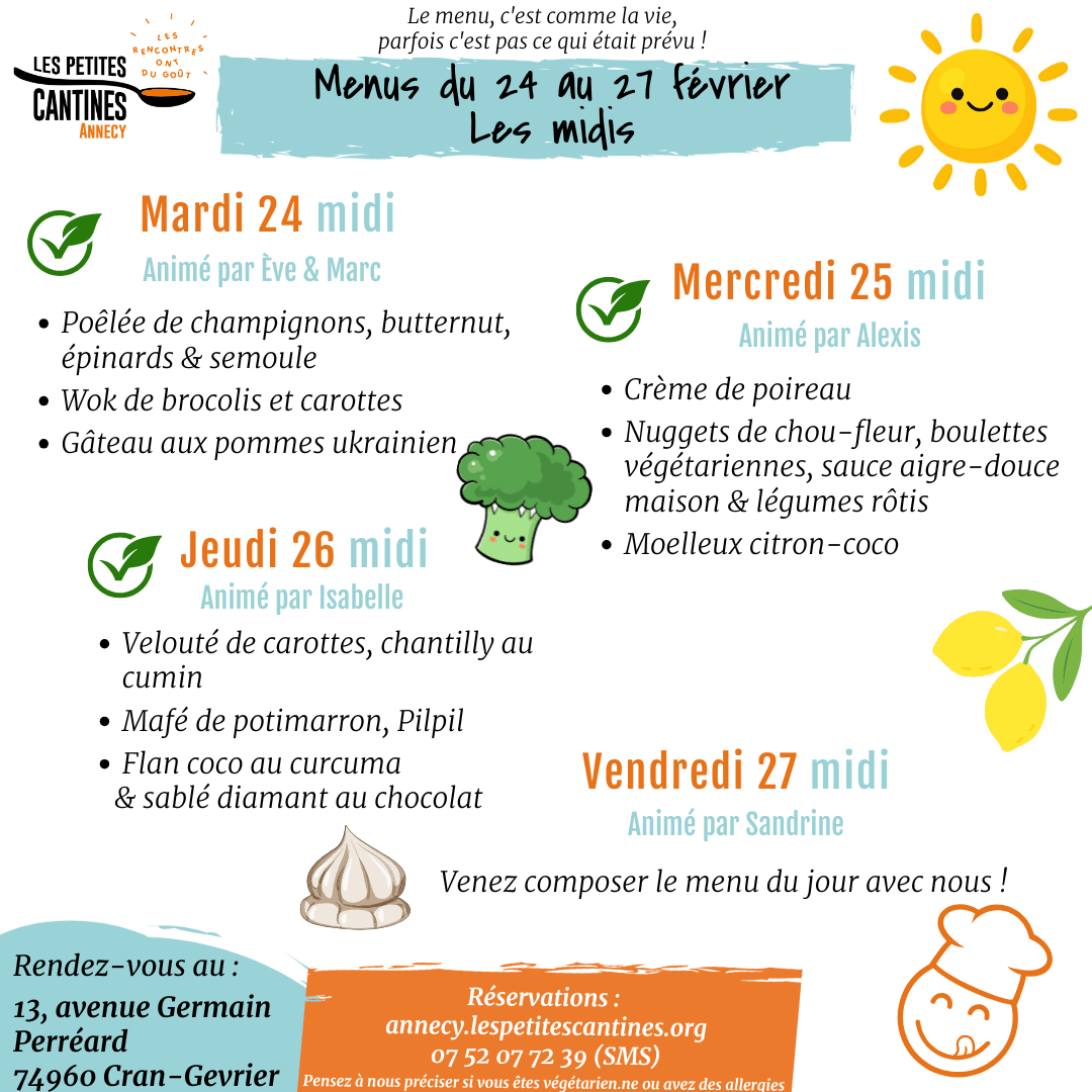 Pour toutes réservations ou informations complémentaires, contactez-nous à l'adresse mail : esprit.equipe.annecy@lespetitescantines.org